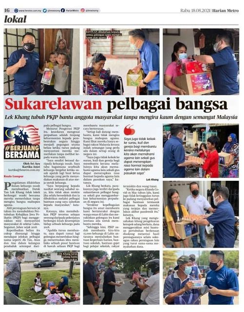 Rakan Media Sukarelawan Pelbagai Bangsa by Tan Lek Khang 18/08/2021 18/08/2021 Setiap kali datang membantu, kami tidak mengira bangsa mahupun agama. Kami lihat mereka hanya sebagai rakyat Malaysia kerana inilah semangat yang perlu ada dalam setiap orang di negara ini. 每次我们来帮忙时,我都不分种族或宗教。我们只将他们视为马来西亚人,因为这是每个人都应该拥有的精神。 0 comment 0 FacebookTwitterPinterestEmail next post Nenek nak pergi cucuk vaksin Leave a Comment Cancel ReplyYou must be logged in to post a comment.